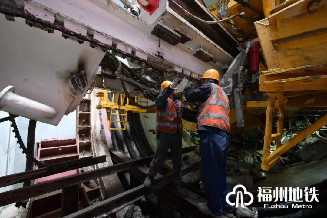 区间地层主要为淤泥夹砂、细中砂(含泥)等富水性地层,还需近距离侧穿既有建筑,风险等级较高,施工难度较大,尤其在富水砂层中可能出现涌水涌砂、喷涌等突出问题。福州地铁多次邀请国内知名专家对盾构选型进行会诊把脉,为该区间量身定制了2台土压平衡盾构机,配置双螺旋输送机及渣土改良系统,并增加多把滚刀,满足区间盾构正常掘进、穿越风险源、到达接收等施工需求。