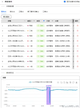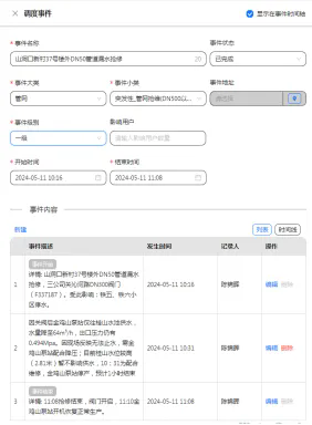 该系统以调度事件为核心,构建了一个覆盖全链条的事件管理中心,不仅能实时记录每一起调度事件,还能通过关联告警、管网操作、调度指令及工单,对事件形成闭环管理,更能确保每一步操作都被精准追踪并高效执行。这就好比在供水生产过程中安装了“全程现场直播”系统,避免了繁琐的跨部门沟通,仅需登录系统即可掌握实时生产动态,大大提升了管理效率与透明度。