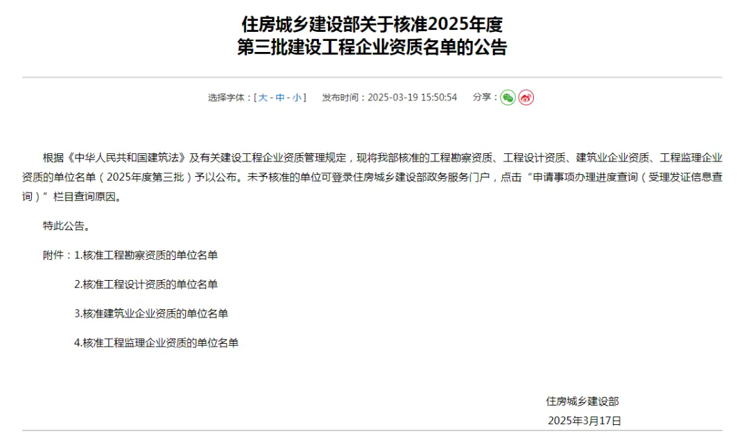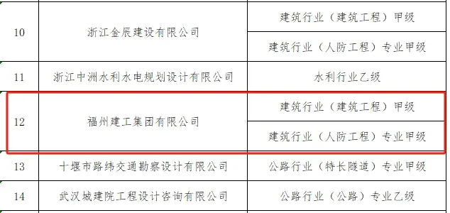 近期,住房和城乡建设部发布核准2025年度第三批建设工程企业资质名单的公告,福州市国资委所出资企业古厝集团所属建工集团有限公司成功获得建筑工程施工总承包特级资质,同时获得建筑行业(建筑工程)甲级、建筑行业(人防工程)专业甲级设计资质。
