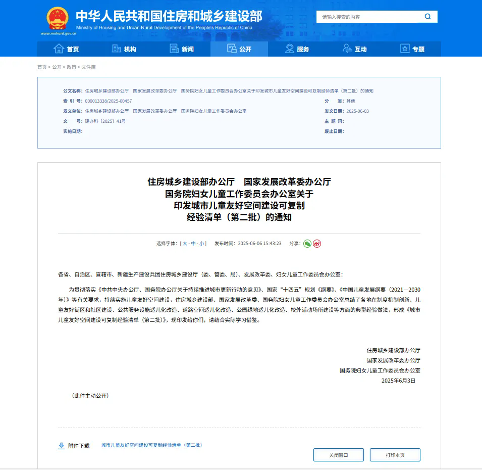 2025年6月6日,由福州冶城集团所属福州市规划设计研究院集团有限公司创新发展研究院助力福州市鼓楼区建华社区成功入选住房城乡建设部、国家发展改革委、国务院妇女儿童工作委员会办公室公布的《城市儿童友好空间建设可复制经验清单(第二批)》。该入选标志着福州儿童友好城市建设成果获国家级认可,其经验将作为优秀范例在全国推广。