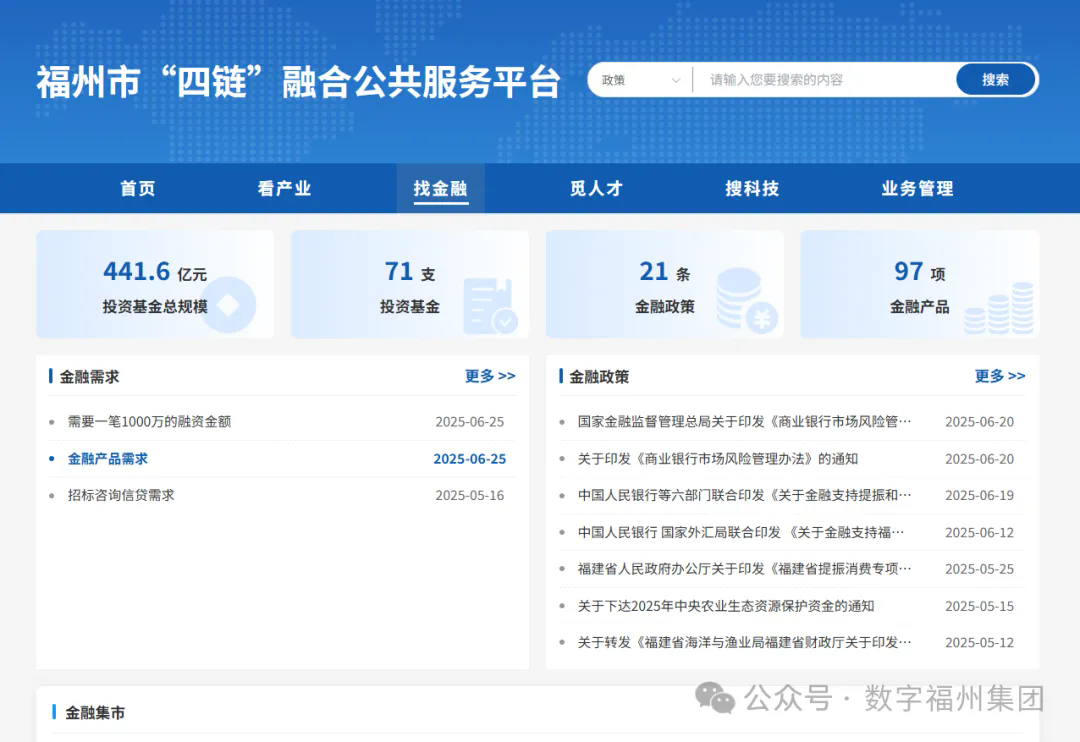 作为福州市重点打造企业版“e福州”,“四链”平台深度整合产业链、资金链、人才链、创新链资源,并构建资金链“需求发布-智能匹配-线下对接”的全链条服务模式。
