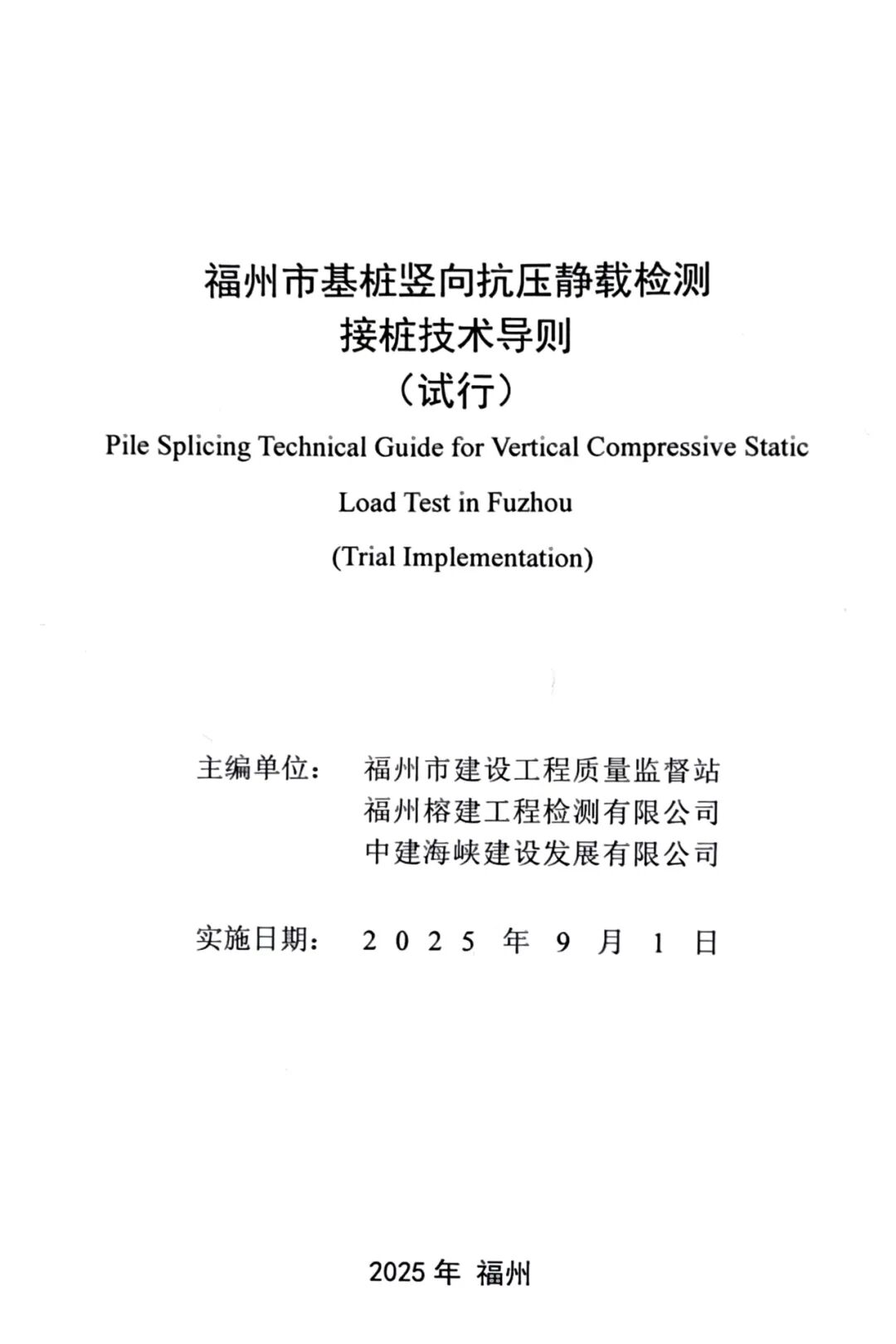 这款专利的诞生,是榕建公司技术团队扎根工程实践的长期积累。此前,榕建公司已联合福州市建设工程质量监督站等单位,共同主编《福州市基桩竖向抗压静载检测接桩技术导则》(试行),并顺利通过审查。在导则编制过程中,团队梳理福州基桩接桩施工痛点、积累试验数据,进而研发出这款专利装置——既让导则的标准化要求有了更具体、可落地的创新载体,也实现了“标准引领”与“技术突破”的协同。
