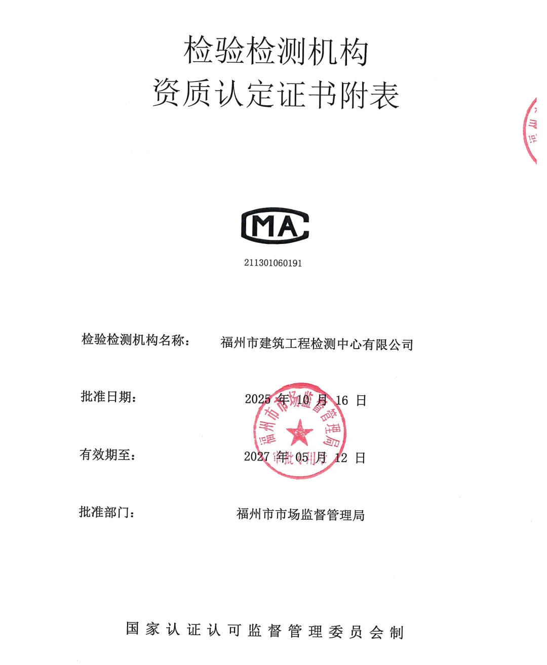 近日,其成功取得人防工程防护设备质量检测资质,成为目前福州市属检测企业中唯一获得该资质并完成备案的机构。该资质的获批,不仅填补了其在特殊专业领域检测的空白,更标志着其凭借九大专项检测资质的完备体系,跻身全省综合性检测技术服务机构先进行列。