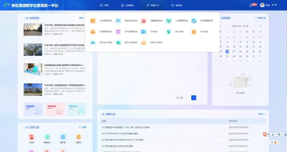 本期六大业务管理系统全面上线,标志着集团在资产、安全、科创、合约、投资与经营分析等核心领域实现一体化、数字化管理新格局。该系统集群将有力推动资产盘活、风险防控、创新驱动与科学决策,为公司的精细化运营和高质量发展奠定数字化基石。