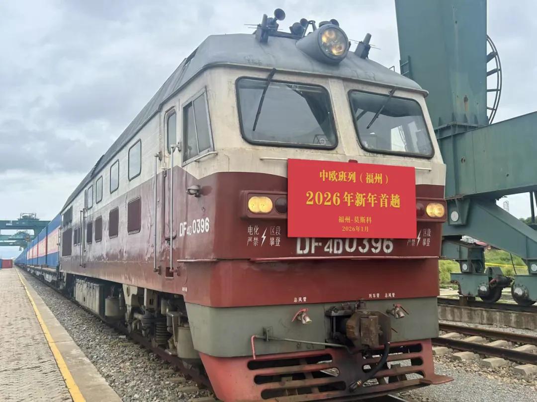 1月6日,一趟满载100个标箱“福建制造”特色商品的中欧班列,从福清江阴铁路物流园鸣笛启程,驶往俄罗斯莫斯科。这是中欧班列(福州)2026年发出的首趟列车。