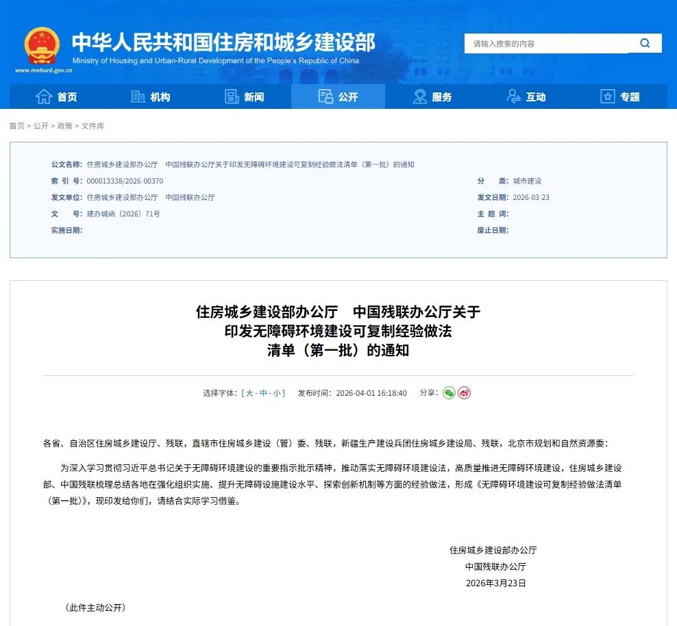近日,住房和城乡建设部办公厅、中国残联办公厅发布《中国残联办公厅关于印发无障碍环境建设可复制经验做法清单(第一批)的通知》。福州冶城集团所属福州市规划设计研究院集团有限公司风景园林设计院、建筑设计院设计的福州市无障碍主题公园,凭借“通用设计”“共建共治”与“多维融合” 三大创新,成功入选“拓宽无障碍场景应用”典型案例,其主要经验做法在全国范围内获得推广。这既是对福州规划设计集团积极响应习近平总书记关于无障碍环境建设的重要指示批示精神的充分肯定,也是对其探索高质量公共空间供给推动城市包容性发展的权威认可。