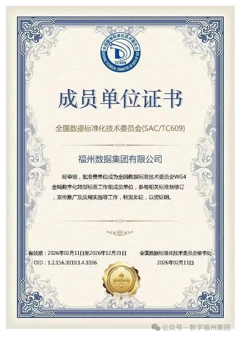 近日,经全国数据标准化技术委员会(以下简称“全国数标委”)审核批准,数字福州集团权属福州数据集团正式成为全国数标委数据流通利用标准工作组(WG3)、全域数字化转型标准工作组(WG4)及数据基础设施标准工作组(WG6)成员单位,深度参与国家数据标准体系建设,标志着福州数据集团有限公司在数据标准领域的技术实力、行业经验与专业能力获得国家级平台充分认可。