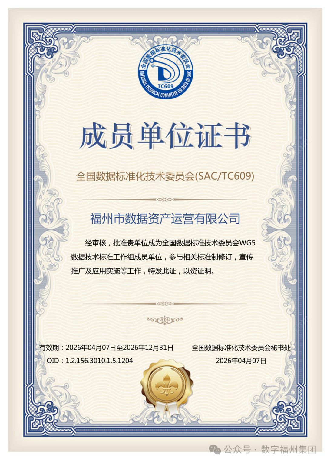 近日,经全国数据标准化技术委员会(SAC/TC609)审核批准,数字福州集团权属福州市数据资产运营有限公司正式成为全国数标委 WG5 数据技术标准工作组成员单位,成功跻身国家级数据标准建设核心阵营,深度参与标准制修订、推广及应用实施,标志着公司数据领域综合实力获国家级权威认可,为福州抢占数据要素发展制高点筑牢标准根基。