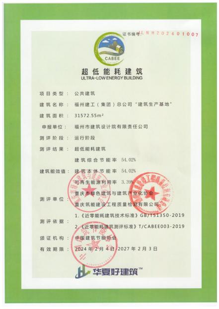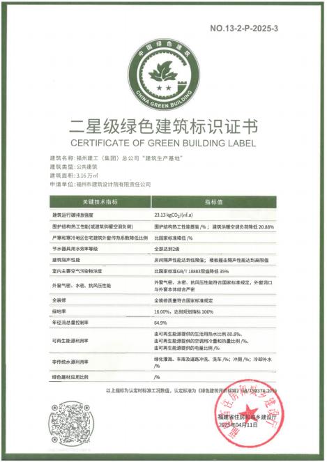 在福州高新区旗山大道东侧,一栋造型独特的折线形建筑静静矗立。这是福建省首个获得超低能耗建筑运行标识的办公大楼——福州城投集团所属市建筑设计院高新区办公大楼。从2022年被列为福州市城乡建设绿色低碳试点项目,到2024年2月获评福建省首个超低能耗建筑运行标识,再到2025年冲击三星级绿色建筑认证,这栋总建筑面积3.15万平方米的建筑,正以54.02%的综合节能率、年均减少427吨二氧化碳排放的实绩,诠释着建筑行业新质生产力的深刻内涵。