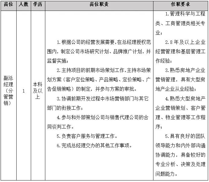 因业务发展需要,公司拓宽人才引进渠道,加大人才引进力度,市场化选聘职业经理人1名。现将有关事项公告如下: